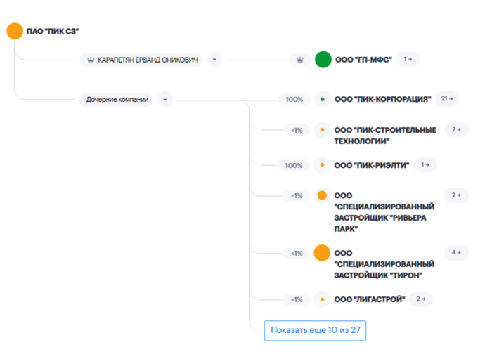 Это головная компания, она является учредителем еще 27+ застройщиков, которые тоже качают прибыль