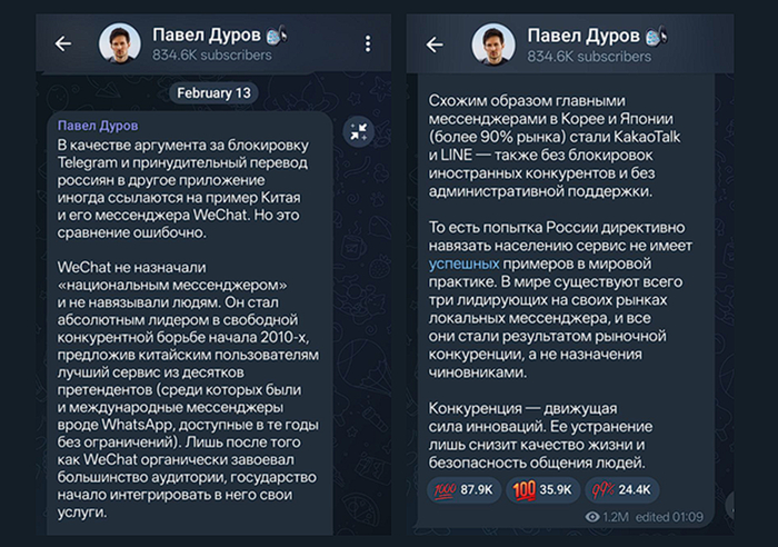 С главной мыслью Павла (что успешный нац-мессенджер — это редкий краснокнижный зверь, и что без нормальной конкуренции его никогда не будет) сложно не согласиться.