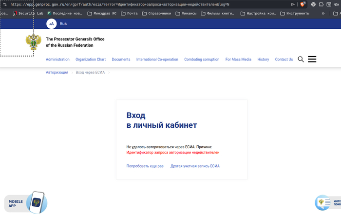 Попытался пожаловаться в прокуратуру, но жалобу подать невозможно — сайт Прократуры https://epp.genproc.gov.ru/ требует авторизацию через Госуслуги, а они запрещают там авторизоваться. Т.о. нарушено право гражданина на обращение.