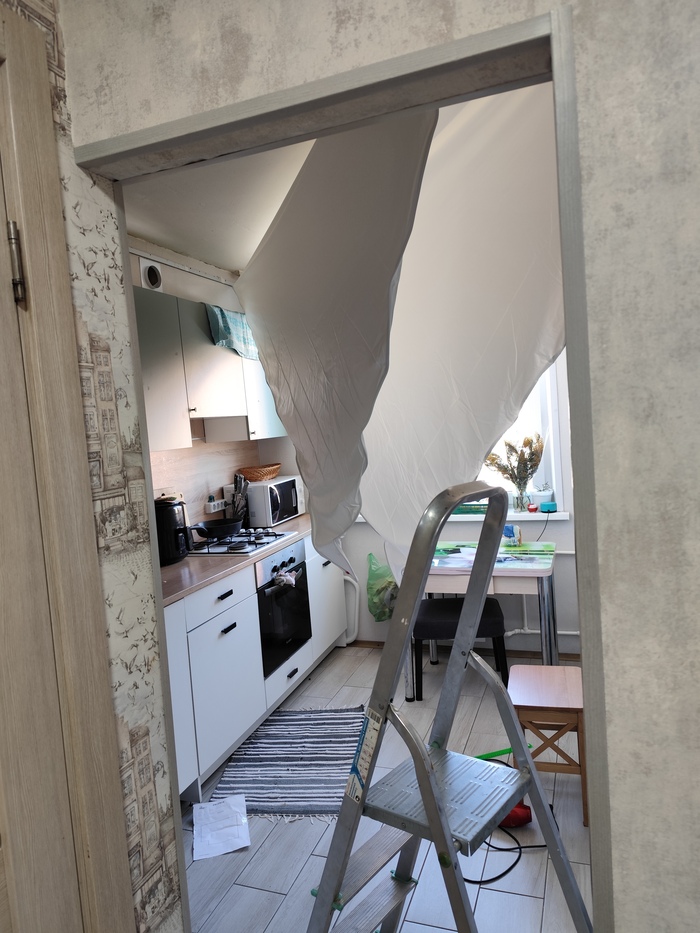 Пару лет назад узнал о существовании потолков холодного натяжения — это когда полотно натягивается без тепловой пушки. И понеслась. Сначала сделал потолки в ванной и туалете, в маленькой комнате (7 кв. м.), в прихожей, теперь очередь дошла до кухни (9 кв. м ).