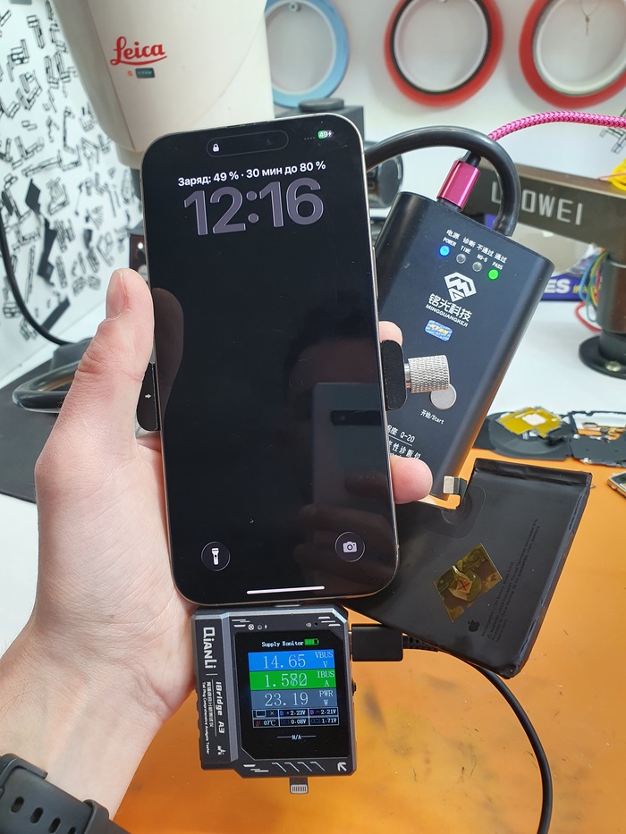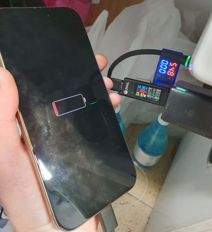 Тут уже включилась быстрая зарядка 15 вольт и 30 ватт всасывания тока, всё как положено и можно всё оставить на плате как есть, но!