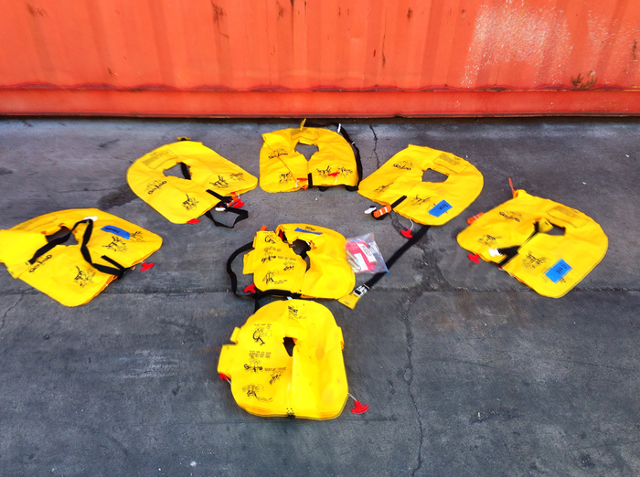 После удара пассажир 6 первым открыл заднюю дверь и сразу прыгнул в воду — без жилета. За ним последовала его жена (пассажир 5), тоже без жилета. Кто-то стал выбрасывать жилеты из самолёта. Пассажир 6 поймал два жилета, один надул и держал при себе, а второй помог надеть жене. Она не застегнула поясной ремень, и позже рассказала, что жилет поднимался к голове и душил её.
