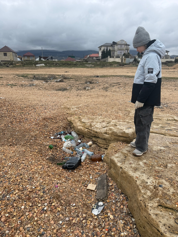 Местные сказали, что за городом море намного лучше. Хорошо, поехали за город в отстраиваемый парк «Патриот», смотреть на разрекламированный экраноплан «Лунь». За поваленной оградой вышли на берег Каспия, пройдя обширный пляж. Здесь, действительно, пляжи гораздо чище городских, если не считать пары переполненных и не убранных баков с отходами прямо посреди пляжной зоны. Однако бегают все те же стаи бездомных собак.