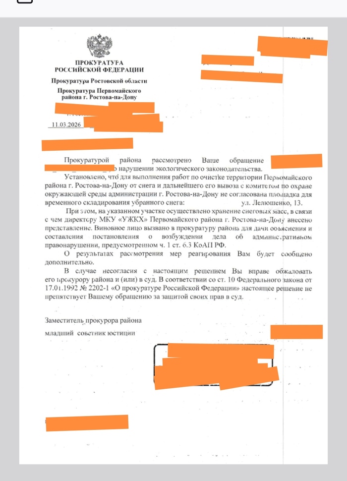 Я хочу довести дело. Буду благодарен за любой юридический или экологический совет. Поднимите в топ, пожалуйста, пусть в администрации Ростова-на-Дону увидят, что от них больше не отстанут. Комментарии для минусов оставлю внутри. Спасибо!