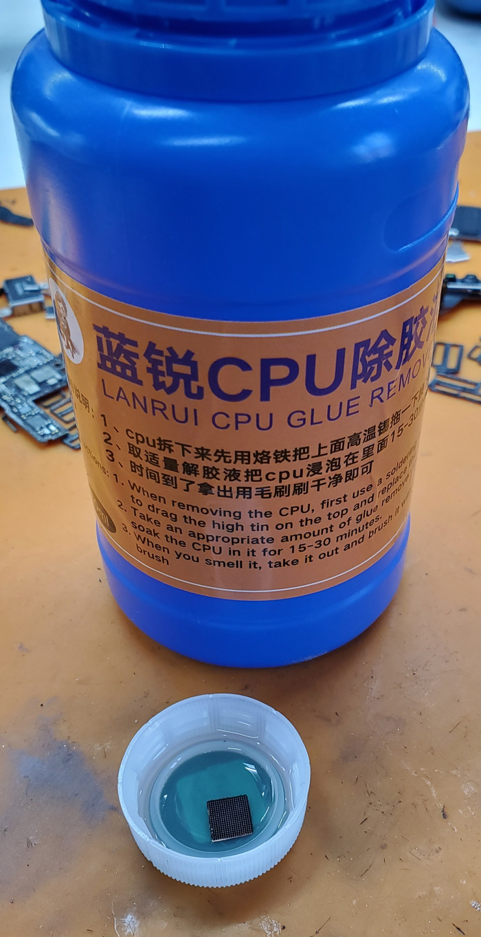 Так легче растворить эпоксидный компаунд и не угреть микросхему при его снятии.