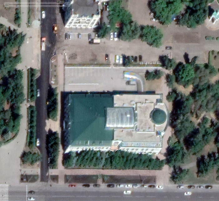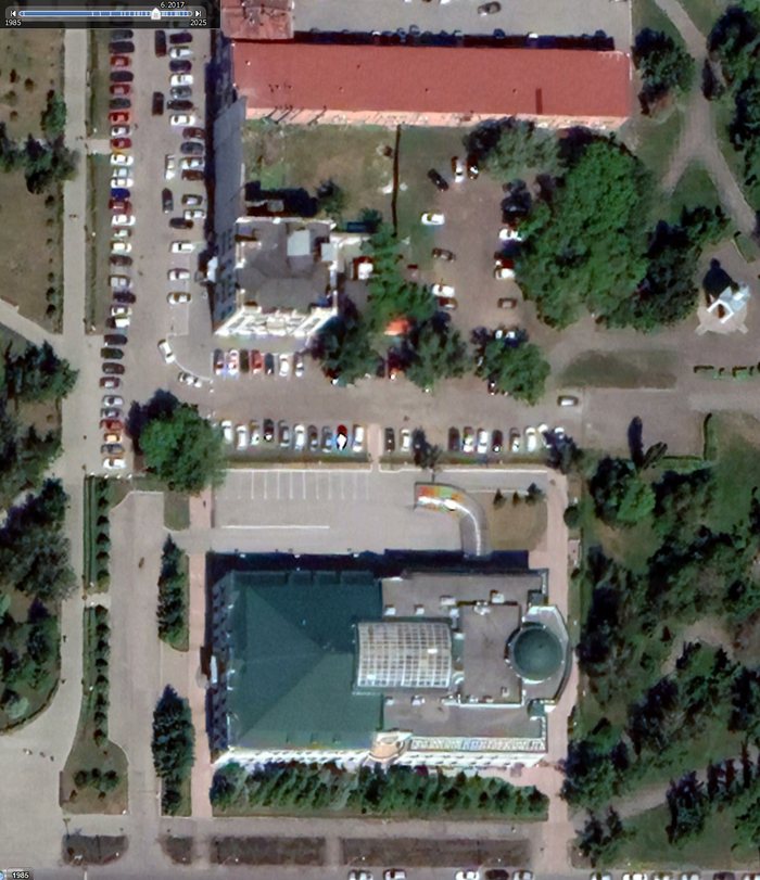 На месте парковки зелени никогда не было. Там была улица, там была парковка. Даже на снимке 1966 года это видно. Это я к тому, что не нужно представлять, будто какие-то злые люди вырубили деревья и поставили туда машины. Нет. Почему эту территорию решили включить в границы сквера — затрудняюсь ответить. По земле я видел в Омске множество крайне сомнительных решений (как например границы участков под МКД, пересекающие проезды — весь прошлый год был кипишь по этому поводу, когда жители начали свои участки огораживать).