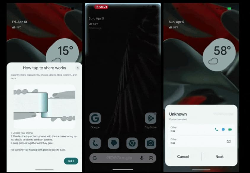 Компания Google готовится внедрить в Android ещё одну функцию, подсмотренную у iOS. Называться она будет Tap to Share, и позволит передавать между смартфонами различные данные, коснувшись ими. У Apple подобная функция называется NameDrop.