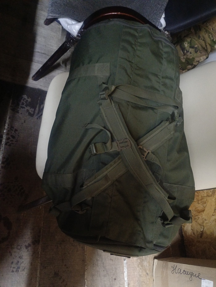 По форме — сумка-цилиндр с двумя молниями и двумя лямками-ручками. По функциональности — идеал. За всю жизнь более удобной сумки не видел, а я видел дохрена, включая натовские. Максимально удобная, вместительная, крепкая. Несколько раз было, что нагружал сумку в половину собственного веса и пиздюхал с ней часами. Закидываешь на спину, как рюкзак, на груди сцепляешь лямки и вперед. Ничего не мешает, не давит, не сваливается. Даже бегать удобно.