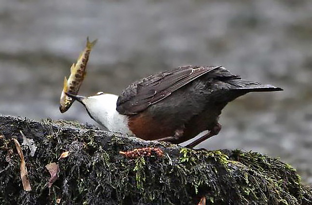 Так что же забыла на дне горного ручья оляпка? Ну конечно же, вкусняшки! Ну очень по вкусу оляпкам личинки ручейников, ракообразные, водные моллюски, мелкая рыбка да головастики. Невкусно ей, понимаете ли, сухопутную животину трескать, так что регулярно опускаться на дно для оляпки – это как в магазин за продуктами сгонять.