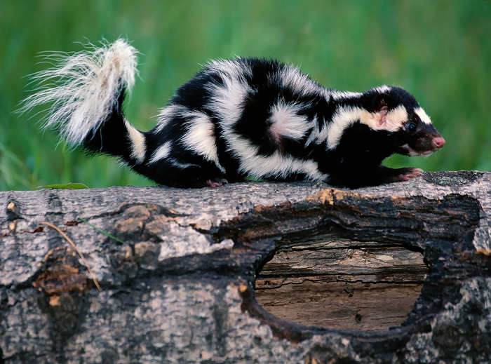 5. Пятнистые скунсы встают на передние лапы, когда видят хищника: им кажется, что в такой позе они выглядят крупнее и страшнее.
