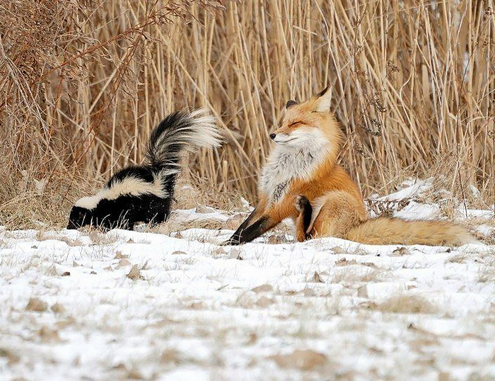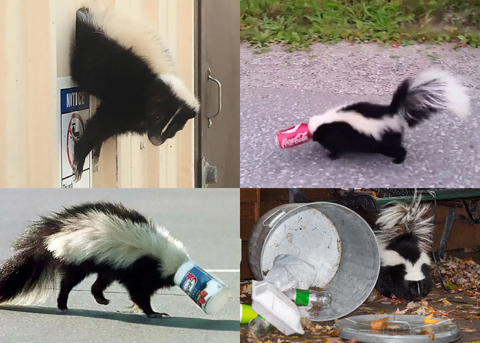 Скунсов частенько застают на месте преступления, когда в поисках вкусняшек они забираются в фермерские дома или в палатки к туристам. И попробуй потом его оттуда выгони – страшно же за собственное обоняние! Впрочем, и за скунса тоже страшно: копаясь в мусоре, он вполне может попасть в беду.