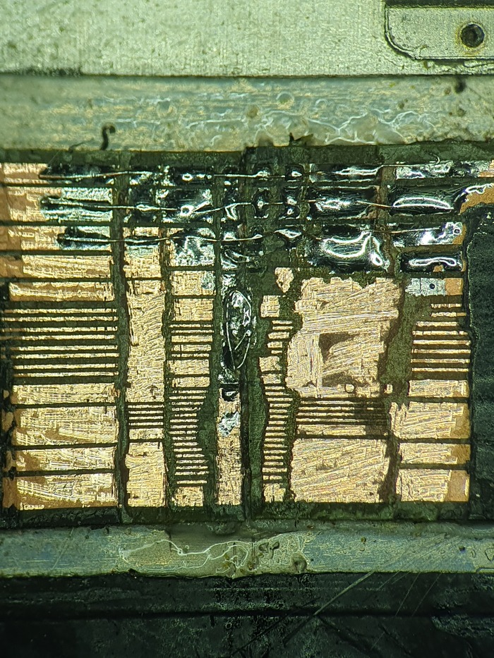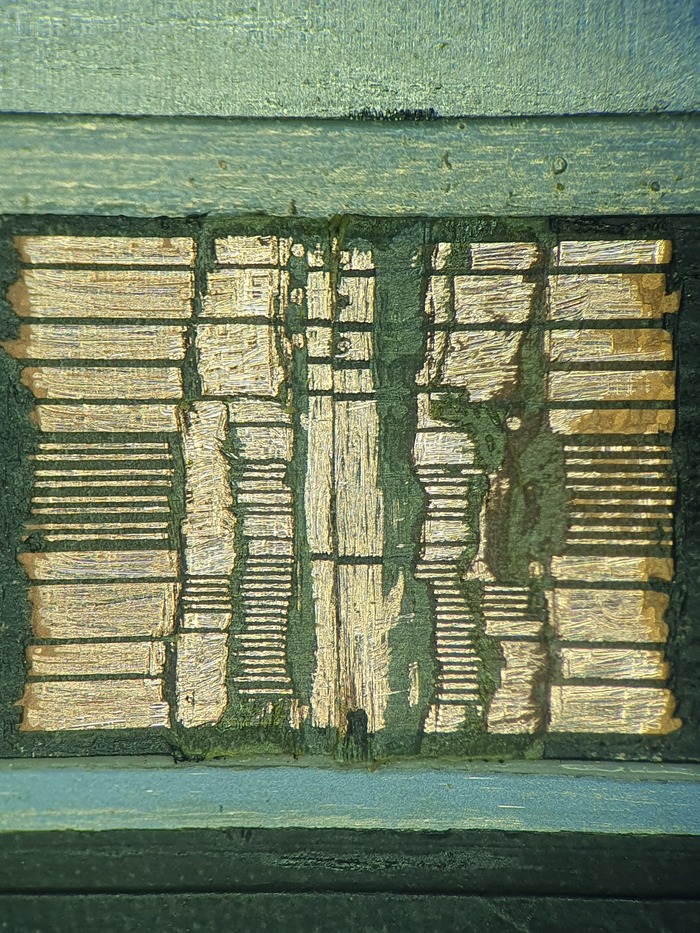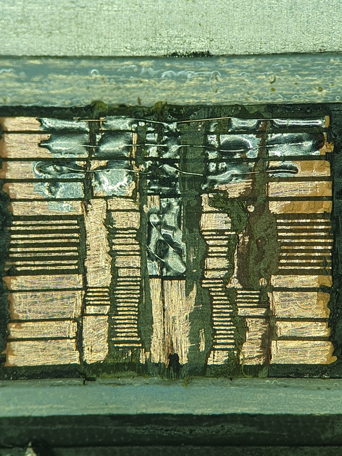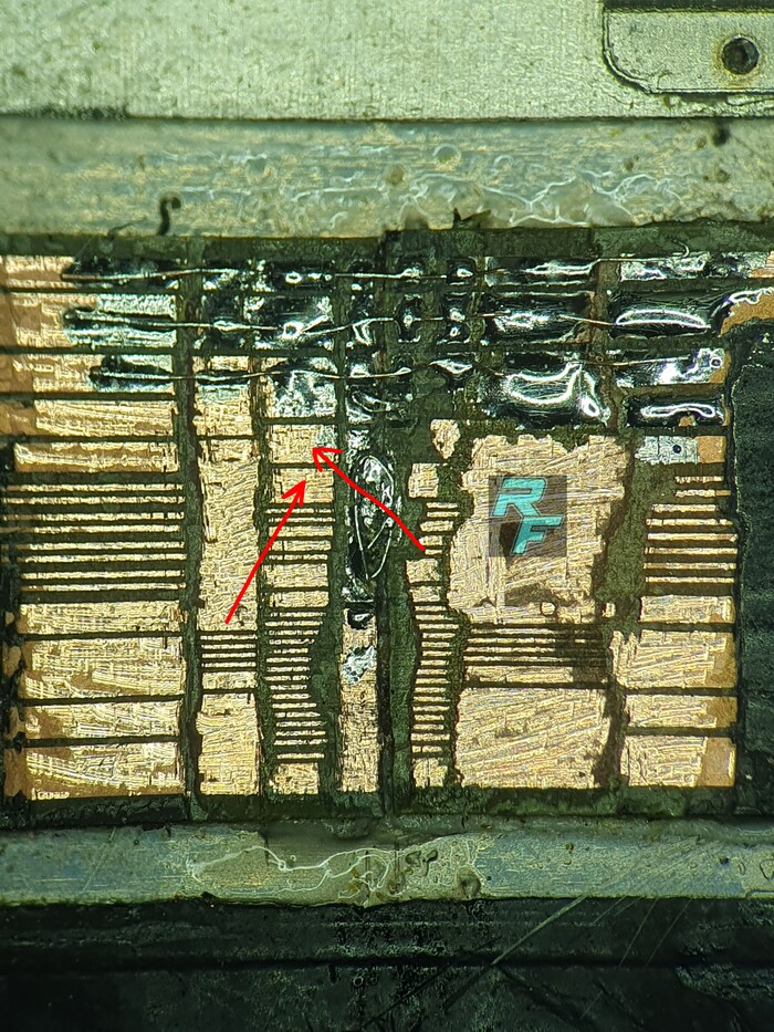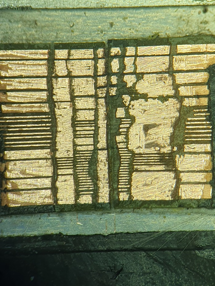 Вот эти две дорожки были в замыкании со стороны моего срезанного шлейфа