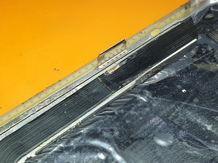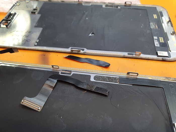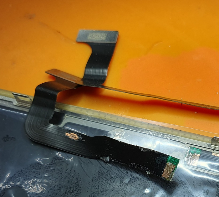 Режу шлейф с битого дисплея, режу с «рабочего» и примеряю хвосты