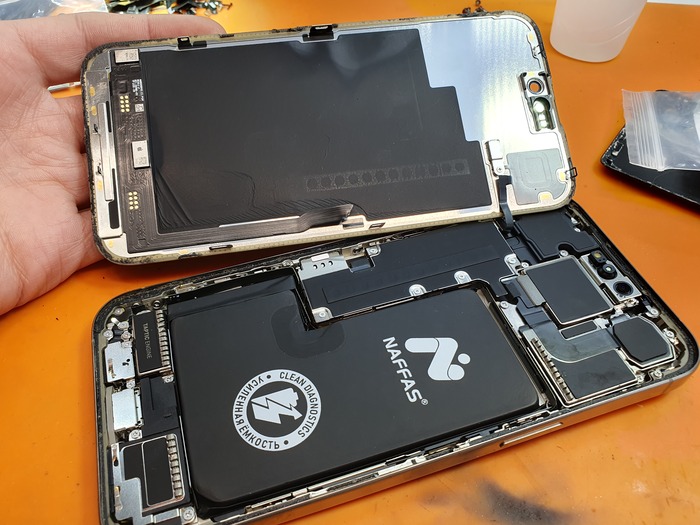 Да там шлейф немножко отошёл, подпаять нужно. Iphone 13 Pro. Открыли не в ту сторону xD