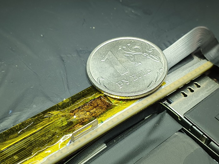 Заклею термоскотчем и приложу рублёвую монету для сравнения масштабов пайки