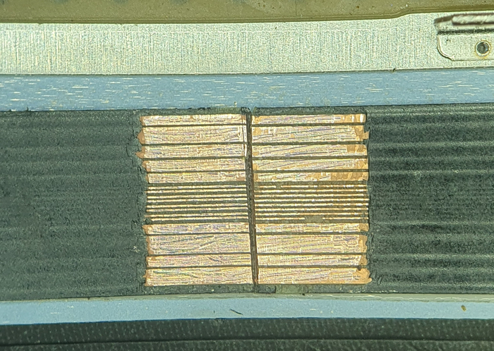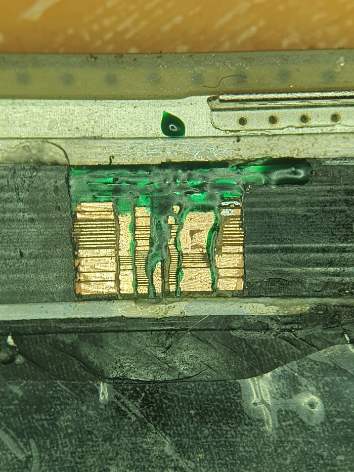 А это линии питания. Нехорошо. Ну подал я чутка на эти дорожки плюс и минус 1в. Грелся шлейф где-то внутри. Бесит.