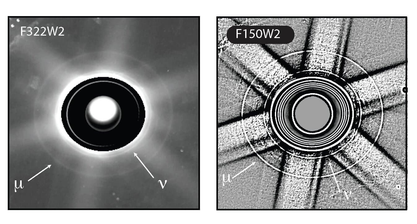 Астрономы с помощью обсерватории Keck на Гавайях и телескопов «Хаббл» и «Джеймс Уэбб» впервые смогли полностью «разложить» два внешних кольца Урана — μ и ν — по длинам волн. Это позволило понять, из чего они сделаны и почему выглядят по-разному.