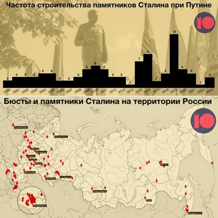 На данный момент в России установлено больше сотни памятников Сталину и каждый год их становится всё больше. В скором времени памятники Сталину появятся в Орле и Череповце. Об установке памятника думают в Ростове-на-Дону.