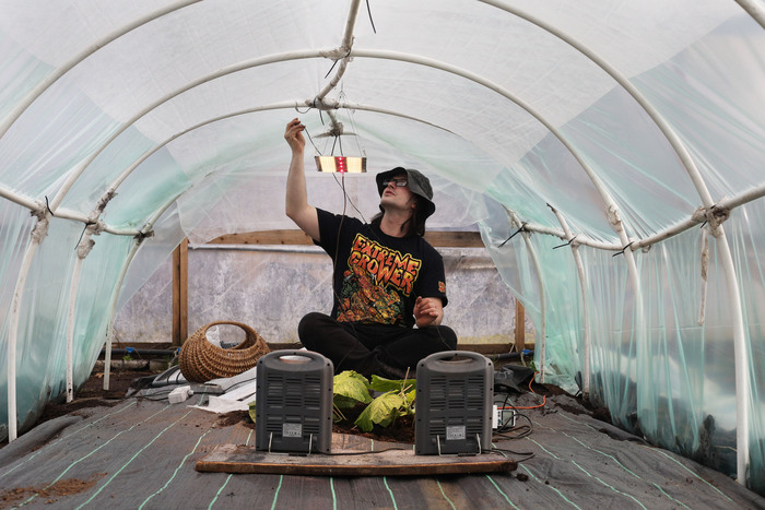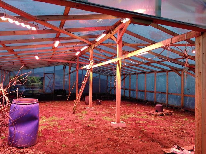 Пока рассада ютилась под лампами, мне нужно было подготовить теплицу к большому переезду. У меня было 13 дней с того момента, как тыквы проросли. В целом, этого всегда достаточно для первичных подготовлений. Одним особым нововведением был свет. Нет, не солнца свет и не звездный, и даже лунный свет померк. Лишь бы свет ваших очей всегда светил. Ребята из компании Rootster подарили мне набор ламп со словами: «Чувак, у тебя крутые тыквы, и мы хотим, чтобы они стали самыми большими в мире. Возьми наши лампы, пусть они тебе помогут». Лампы для рассады? Уж нет, нечто посерьезнее и помощнее. Всего мне привезли 10 фитоизлучателей по 500 ватт каждый, и в совокупности это дает 5 киловатт света. Вообще, мне предлагали на всю теплицу по максимуму, но, боюсь, сеть моего СНТ не выдержит таких нагрузок (и мой кошелек), поэтому я ограничился досветкой, рассчитанной на одну половину теплицы.
