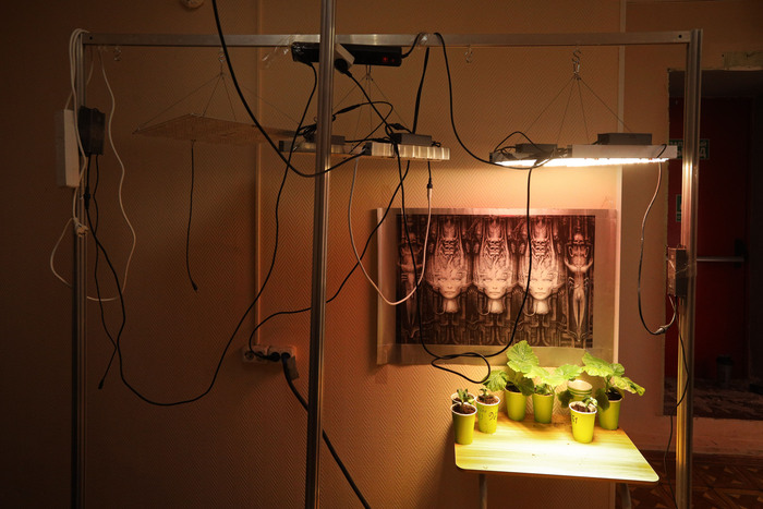 Идея весьма проста. Нет, не светить на тыкву круглые сутки и не продлевать длину светового дня. Дело в том, что погода крайне нестабильна и летом часто бывают затяжные дожди, пасмурная погода, буквально неделя может быть без солнца. В эти дни количество света, который получают растения, заметно падает, и в следствие этого фотосинтез будет протекать не самым лучшим образом. В это время растение начинает сдавать позиции и замедляться, чего очень не хочется допускать. Вот в этот момент и пригодятся лампы как дополнение к дневному свету в пасмурные дни. Сам спектр этих ламп рассчитан именно на роль дополнительного света, а не его замену. По крайней мере, я обрисовал такую задачу, и мне подобрали эти лампы. Это профессиональные лампы для агропромышленных комплексов, задача которых — увеличить общий тоннаж урожая. Надеюсь, они сыграют свою роль.