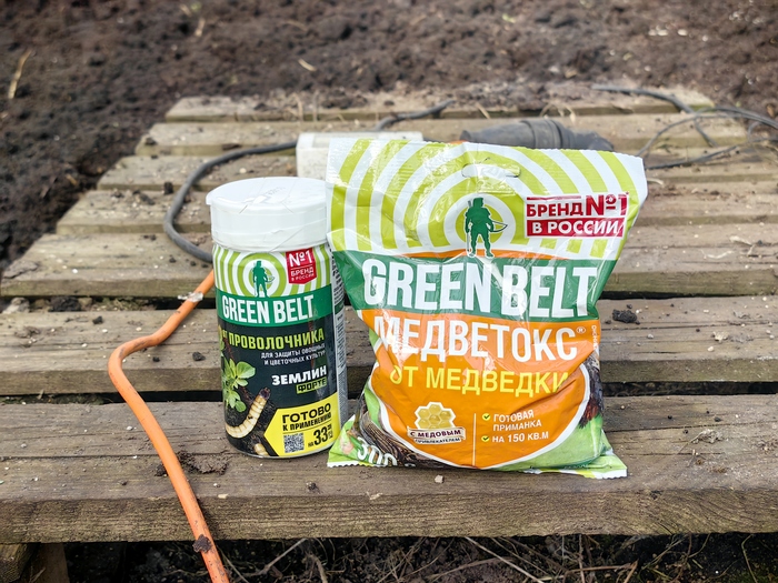 Как только я включаю греющий кабель, образуется опасная ситуация… Все вредители с О всей округи начинают собираться в самом теплом месте, и именно в это теплое место я буду высаживать тыквы. Это как бездна, кишащая разными тварями, такими как медведки или проволочник. Поэтому каждый год я в обязательном порядке вношу изрядное количество отравы от вредителей. Обычно это Медветокс и Землин от Грин Белт. Потом, периодически, я вижу отравленных медведок, которые, потеряв смысл жизни, выбрасываются на поверхность и медленно погибают в лучах уходящего солнца.