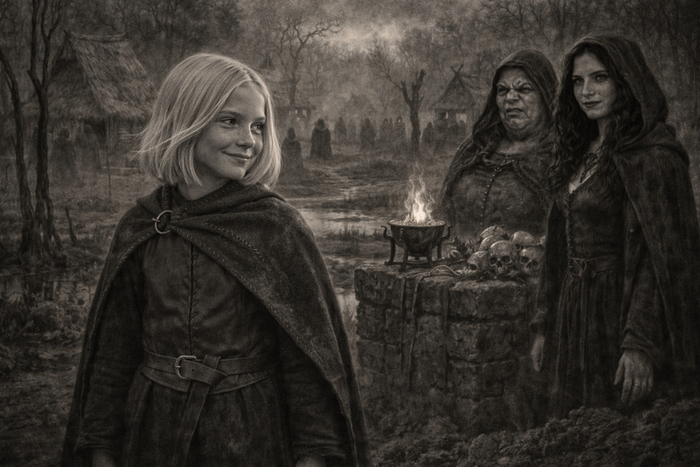 — Стоять! – скомандовал чей-то громкий голос. Ведьмы тут же прижались к земле и испуганно заскулили, когда из-за дерева вышла рослая женщина с властным, надменным лицом. Она без стеснения подошла к Никандоре и, осмотрев девчонку, улыбнулась, обнажив черные, сгнившие зубы. – Не лучшее ты выбрала место для прогулки, девочка.