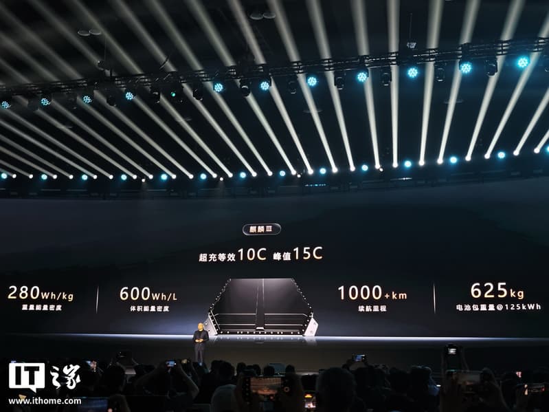 На презентации Super Technology Day 2026 компания CATL официально представила тяговую батарею Kirin третьего поколения. Новая аккумуляторная система сильно улучшилась в своих характеристиках: запас хода превышает 1000 км, объемная плотность энергии достигла уровня 600 Вт·ч/л, удельная плотность — 280 Вт·ч/кг. При этом батарейный блок емкостью 125 кВт·ч теперь весит всего 625 кг — он на 255 кг легче LFP-решений, что напрямую влияет не только на запас хода, но и на динамику машины.