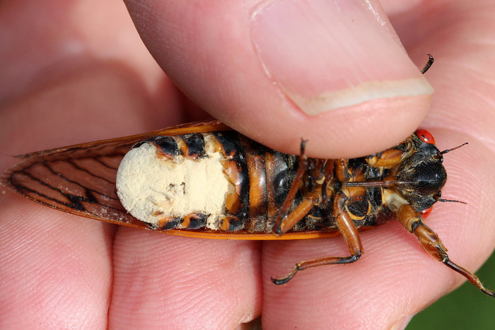 Самое странное — его плодовое тело развивается не как шляпка или спора на поверхности. Оно появляется прямо из тела насекомого, вытесняя его заднюю часть, как белый, рассыпающийся ком. Взглянув на заражённую цикаду, можно подумать, что она лишилась половины туловища. И всё же она летит, поёт, ищет партнёра. Даже когда уже не может его оплодотворить.