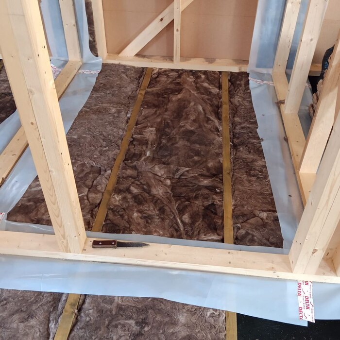 Внутренние перегородки должны находиться внутри пароизоляционного контура. Для того, чтобы достичь этого результата в ситуации, когда перегородки возводятся на этапе строительства каркаса, а не после готовности тёплого контура, вокруг них прокладываются так называемые закладные пароизоляции — широкие ленты пароизоляции, которые проходят между каркасом и перегородками, позволяя в дальнейшем подклеиться к ним полотнищами пароизоляции.