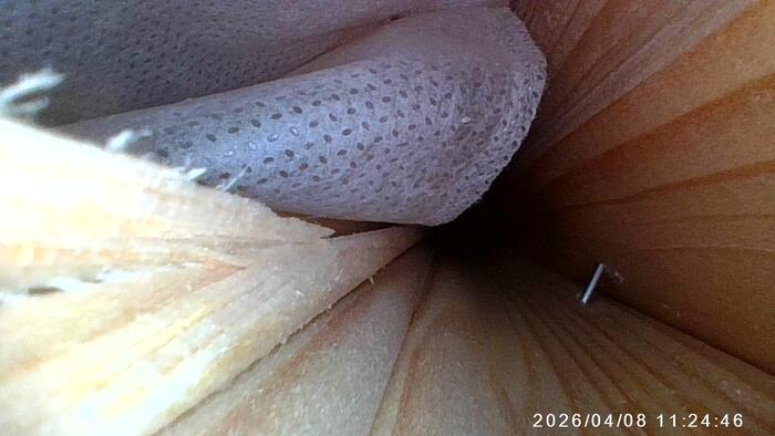 Но в целом, как видите, возможно исследовать состояние стен и качество монтажа пароизоляции и без тепловизора с аэродверью. Если, конечно, стыки между перекрытиями и стенами не выполнены так герметично, что не засунуть 5 мм камеру эндоскопа. Но тогда и нареканий к пароизоляции не будет.